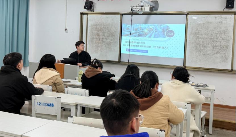 智能制造学院工业机器人教研室于12月上旬在教学楼A113举行“四川省2025年度教师教育实践基地跟岗实践项目”专题分享会。分享人宋泓朋老师以“机器视觉与AI赋能工业机器人教学”为题,向全体教研室教师做了一场干货满满的汇报。宋老师结合今年9月10日—9月30日在基地20天跟岗实践经历,从“四跟”模式、企业调...