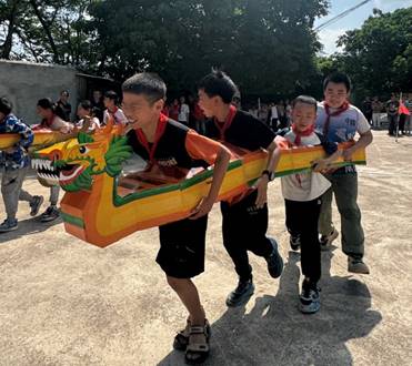 旱地龙舟赛:随着发令哨响,4人一组的参赛队伍迅速踏上特制龙舟框架,队员们喊着整齐的口号,步调一致地向50米外的终点线冲刺。比赛过程中,各队奋勇争先,虽偶有龙舟框架倾斜或队员脚步错乱,但大家迅速调整,展现出良好的团队协作精神。