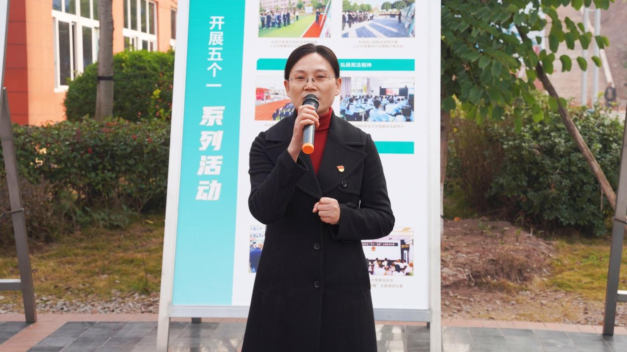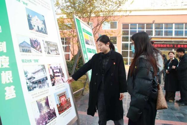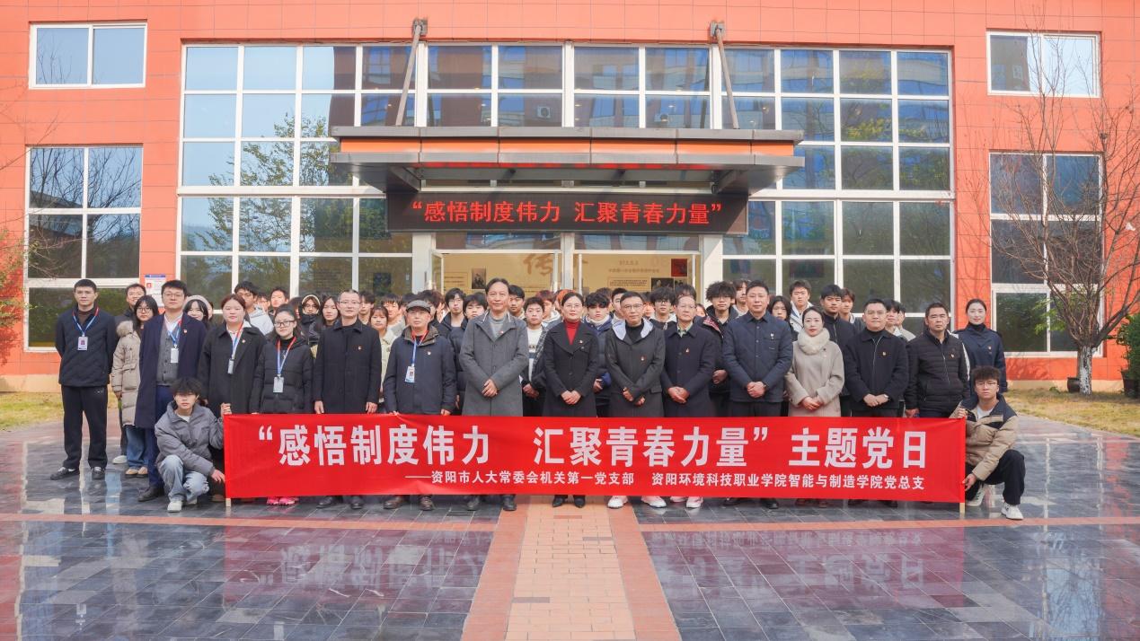 为深入学习贯彻习近平总书记关于坚持和完善人民代表大会制度的重要思想和中央、省委、市委人大工作会议精神,引导教育青年学生了解人大制度、学习人大知识,增强民主法治意识,12月18日,资阳环境科技职业学院智能与制造学院党总支联合资阳市人大常委会机关第一党支部联合举办感悟制度伟力 汇聚青春力量——“人大与青春同行”主题图片展进高校主题党日活动。市人大常委会秘书长鲁琼,学校党委书记、省政府督导专员喇明清,党委副书记、纪委书记龚远,学校副校长叶宜胜,党建工作部部长李叔龙,智能与制造学院党总支书记王用帅等领导出席,市人大常委会机关第一党支部成员与80余名师生代表共同参与展览参观与交流。